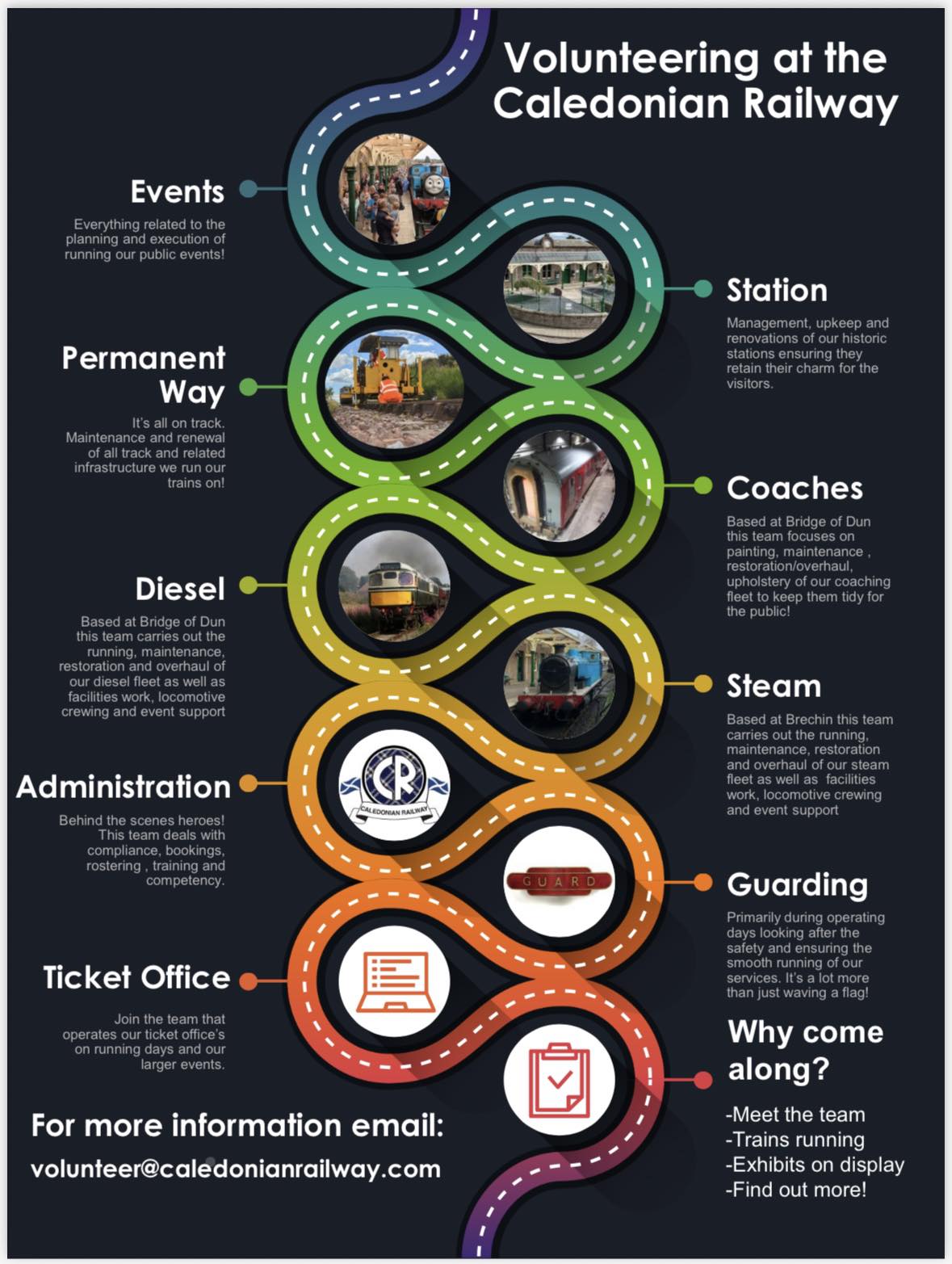 Intersted in becoming a Volunteer on the Caledonian Railway. We are holding a Volunteer Recruitment Day on Saturday 30 May 2026. For more information email - volunteer@caledonianrailway.com.